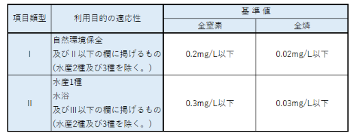 | II | 水産1種 水浴 及びⅢ以下の欄に掲げるもの (水産2種及び3種を除く。) |