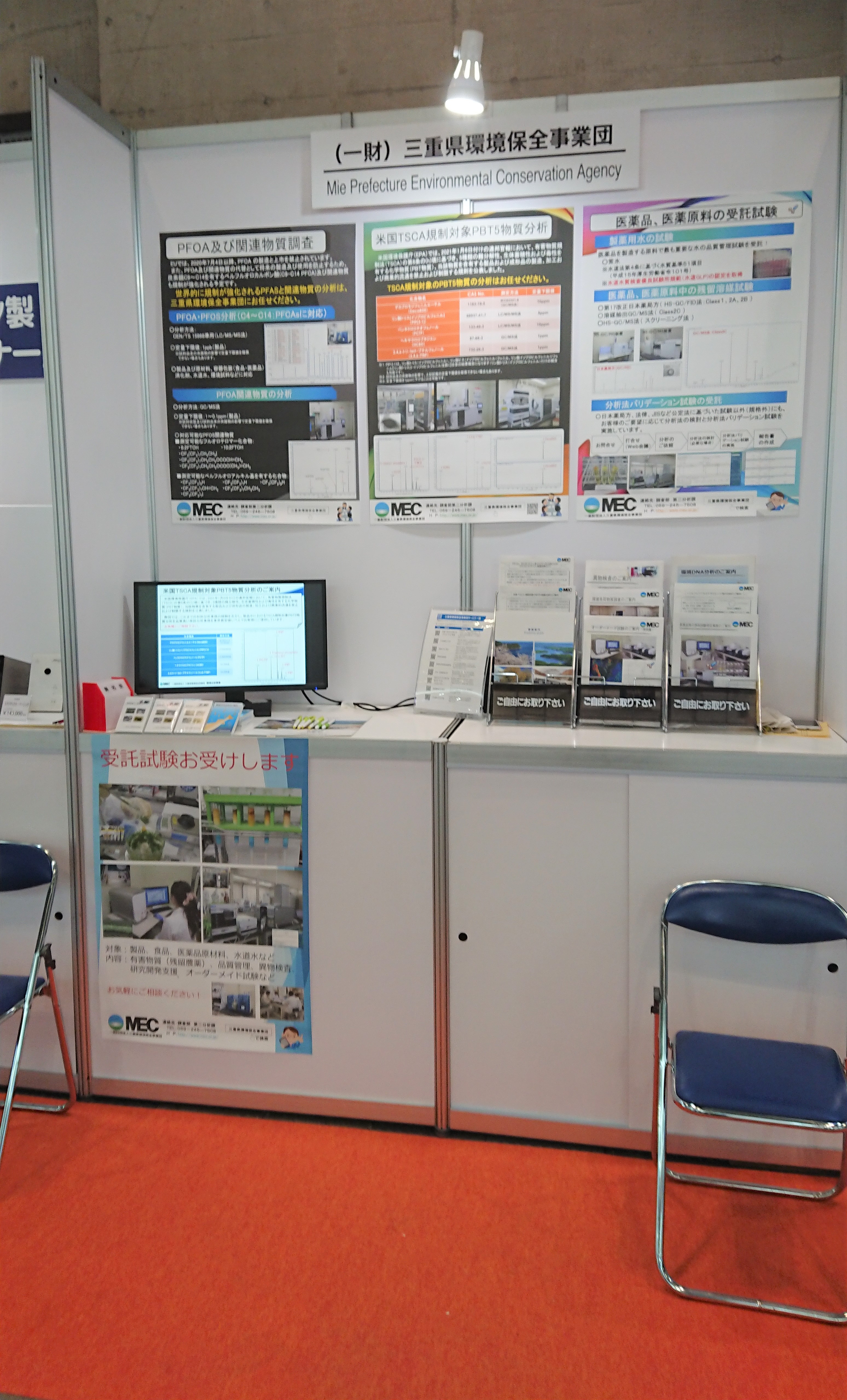 出展ブースでは、ベテランの検査員により欧州を中心に世界的な規制が強化されているPFAS分析や米国TSCA規制対象PBT5物質分析、医薬原材料の分析、研究・開発を支援するオーダーメイド試験、衛生検査など、日常業務でお客様が抱える様々な問題を解決するための最適なソリューションをご提案させて頂きました。